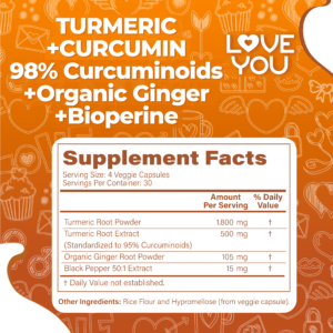 - Ingredients: Vegetable capsules containing turmeric, ginger, and black pepper extract.